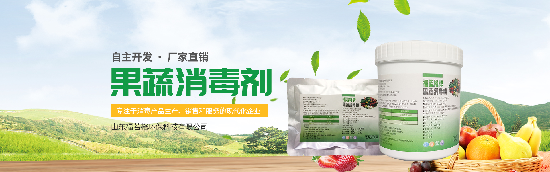山東福若格環保科技有限公司成立于2021年02月03日,注冊資金300萬元,是一家專注于消毒產品生產、銷售和服務的現代化企業。公司秉承“綠色、環保、無污染”的理念,專注于消毒制劑的開發和研究,旨在服務于人民群眾的身體健康......
